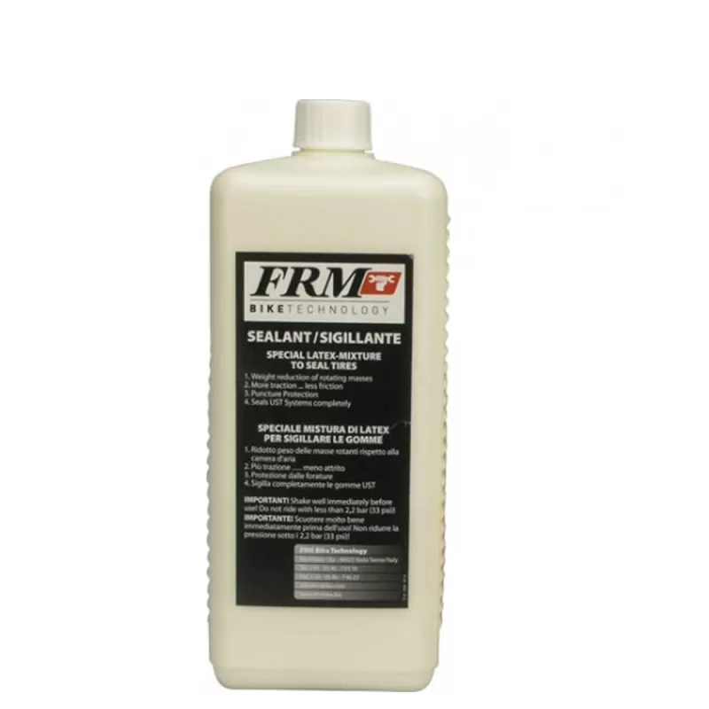 SIGILLANTE TUBELESS FRM 1000CC CON DOSATORE Prodotto in Germania Trasforma gomme normali in Tubeless con Flap RRS o White Tape Sigilla anche gomme UST Se opportunamente usato sigilla fori fino a 6mm Sono necessari da 50 a 80cc a seconda delle dimensioni della gomma Disponibile in confezioni da 1000cc