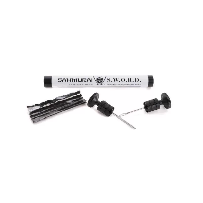 Dall'esperienza del tre volte vincitore della Cape Epic, Stefan 'Sahmurai' Sahm nasce Sahmurai Sword un kit pratico e leggero per la riparazione dei tubeless. Il kit è composto dai due attrezzi necessari per la riparazione del tubless con il "vermicello" in gomma, integrati in due leggeri tappi manubrio.