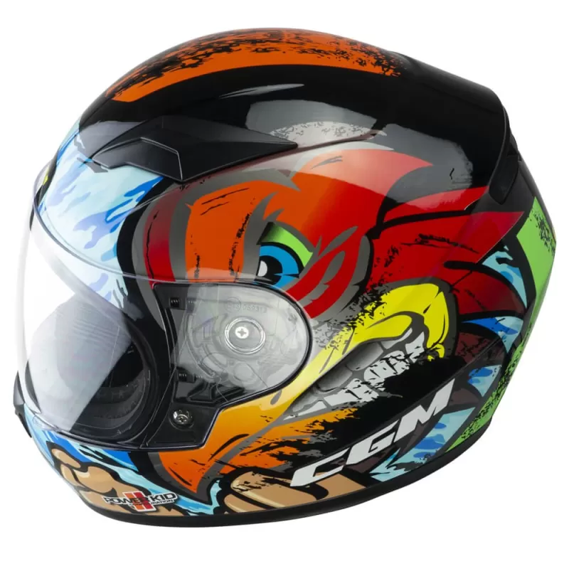 Il 265 LUCKY è l'integrale CGM dedicato ai giovani motociclisti. Casco leggero con taglie realizzate tenendo conto della conformazione cranica dei più piccoli, contraddistinto da grafiche accattivanti per una protezione sicura e divertente dei giovani biker. Dotato di visiera lunga basculante antigraffio dallo sgancio rapido e sistema di ventilazione Air Stream System a tre zone con canalizzazione interna. Interni estraibili termoformati esagonali per un miglior comfort di calzata, dal tessuto ExtraCool con cuciture a contrasto. Completano le dotazioni deflettore paranaso, deflettore paramento ed elastico fermacinturino.