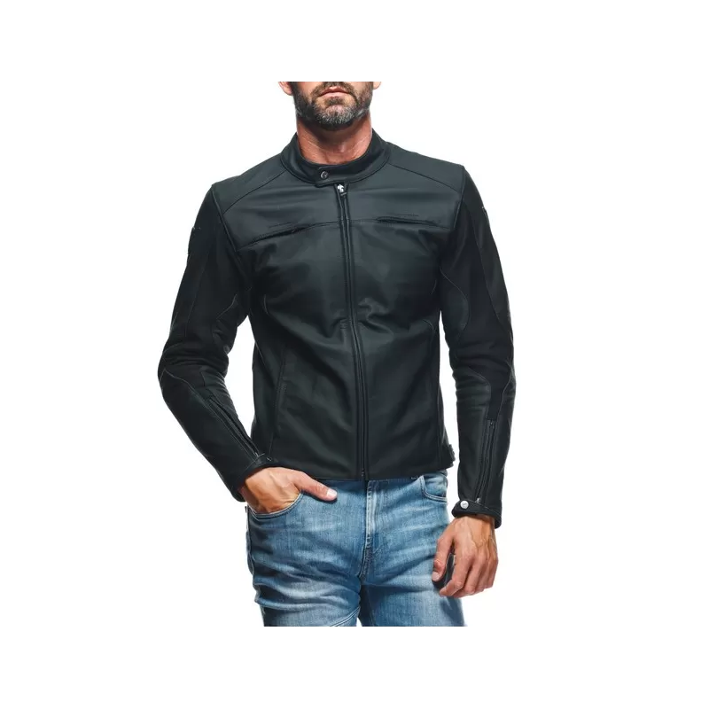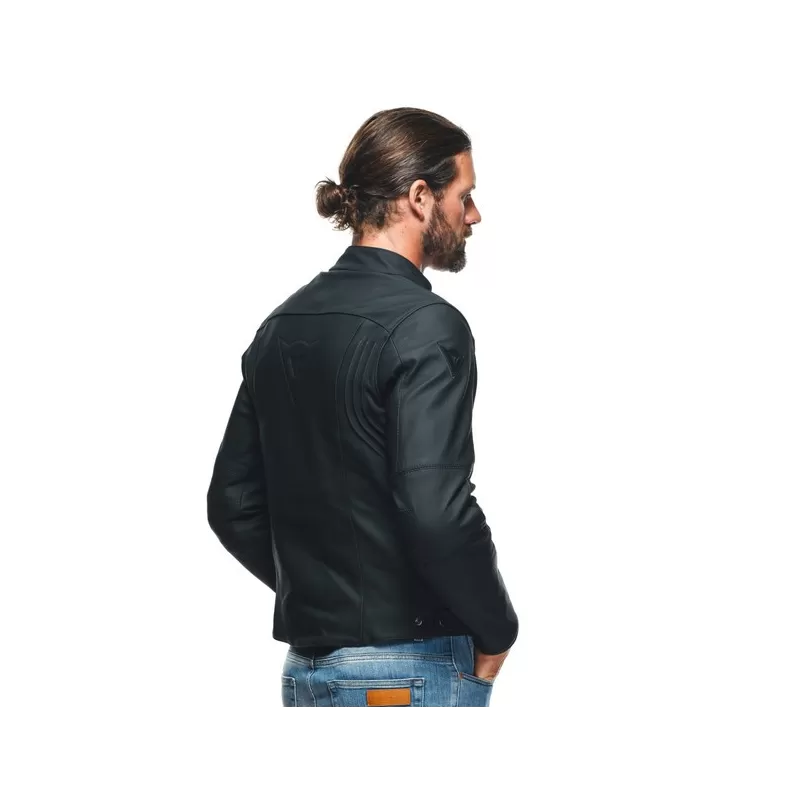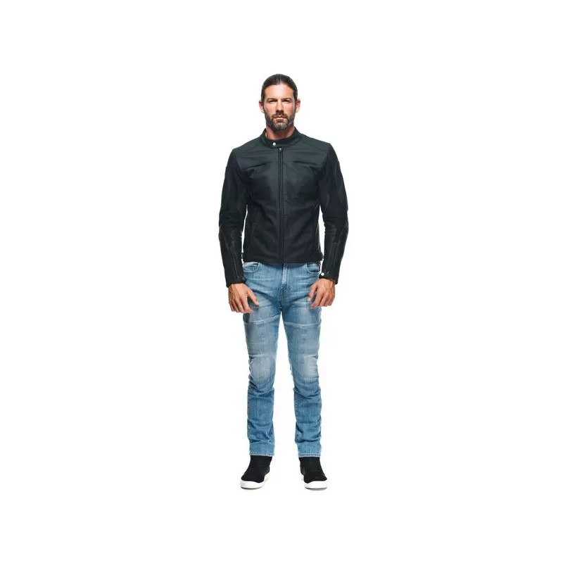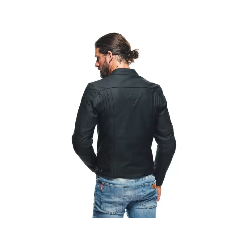 Dotata di tasca posteriore con predisposizione per inserimento del paraschiena, tasche con zip laterali, regolazione del fit con bottoni automatici su fianchi e polsi e prese d'aria sul petto per ottimizzare il comfort termico anche nelle stagioni calde, la giacca moto in pelle Dainese Razon 2 concilia estetica di ispirazione urbana e altissimi livelli di protezione, garantiti dalla presenza di protezioni Pro-Armor, ultra resistenti, morbide e removibili, certificate secondo lo standard EN 1621.1.