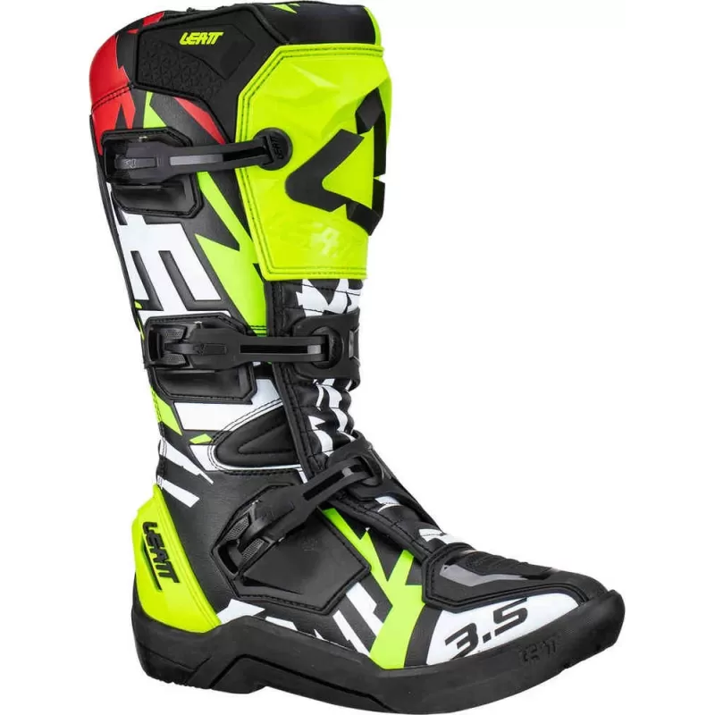 Descrizione Gli stivali moto 3.5 Leatt potrebbero essere proprio quello che stai cercando! Un design confortevole, sicuro ed eccellente ad un prezzo che è difficile da battere. Incluso anche il sistema di chiusura SlideLock che viene utilizzato in entrambi i modelli 4.5 e 5.5 FlexLock boots insieme con la zona di guida estesa della pedana per coloro che amano guidare sulle dita dei piedi. Un puntale ribassato consente un facile cambio dell'attrezzatura e una morbida imbottitura all'interno della zona della caviglia che garantisce comfort e sicurezza. Se stai cercando il prossimo modello nella gamma degli stivali moto di Leatt, controlla i modelli 4.5 oppure 5.5 FlexLock