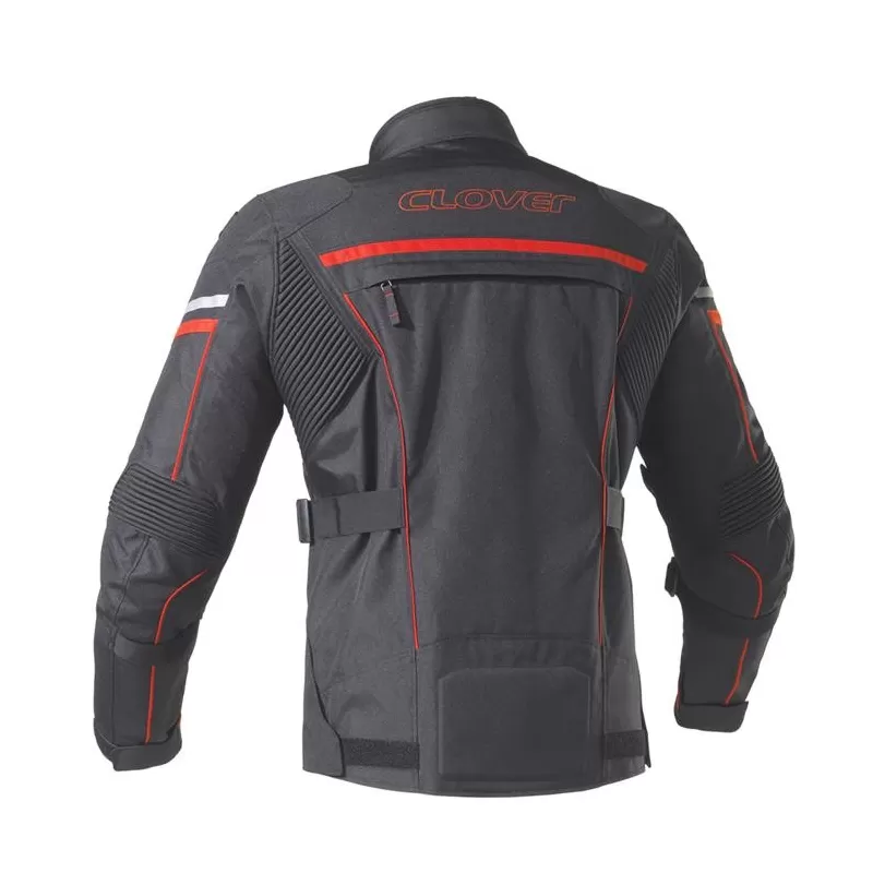 Con questo capo Clover è riuscita ad unire il mondo del touring con il mondo sportivo sviluppando un prodotto che grazie al suo taglio è perfettamente utilizzabile in entrambi i mondi riportando una vestibilità più aderente grazie alle regolazioni proposte, ma un taglio touring che strizza l’occhio al fuoristrada, inoltre la tecnologia IN&OUT consente di utilizzare ogni strato della giacca indipendentemente o combinandoli fra loro per un totale di 4 giacche in 1.