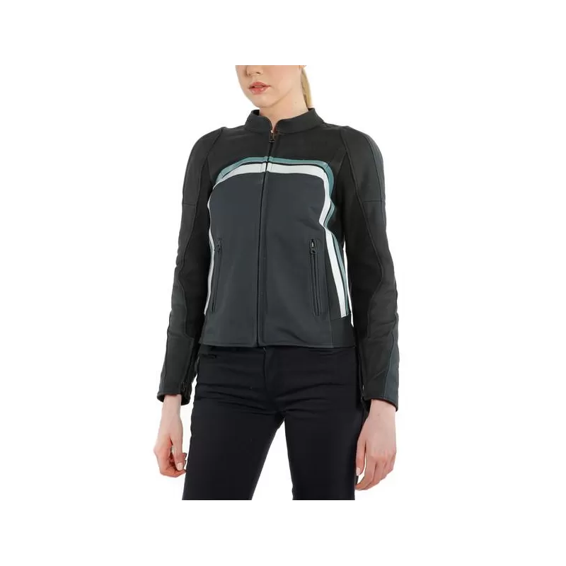 Giacca confortevole da donna in pelle, trattamento opaco Iride Matt e protettori morbidi Pro-Armor su spalle e gomiti per un ottima protezione senza macnare di stile.