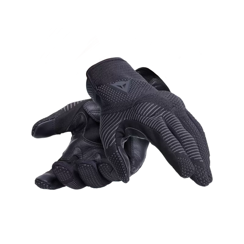 Guanti da moto in tessuto knit e protezioni visco-elastiche preecurvate sulle nocche. Sistema Smart Touch sulle dita.