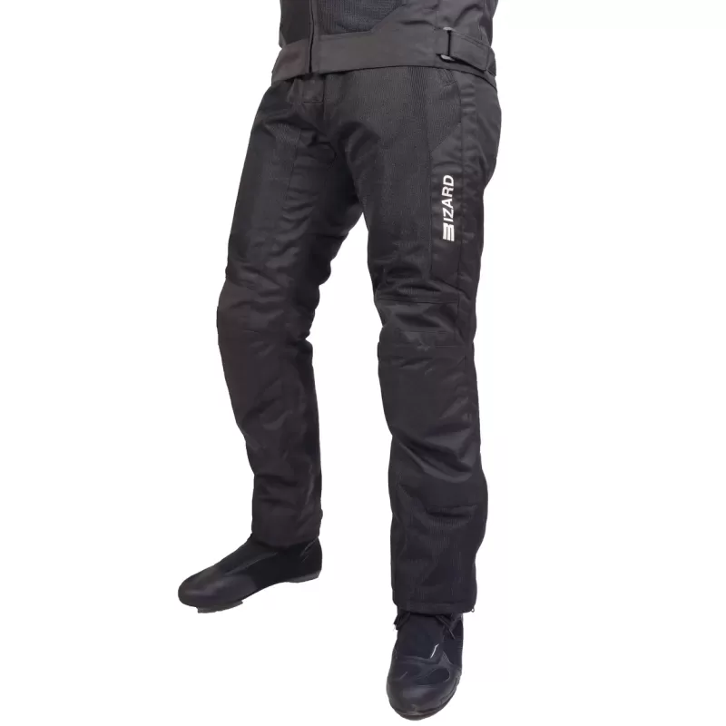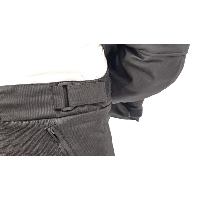 Protettori compositi estraibili certificati secondo la norma EN 1621.1 / 97Resistenza abrasione e trazione Tessuto MugelloErgonomia Cerniera aggancio giubbino-pantalone Regolazione ampiezza vita Zip su fondo gamba Regolazione temperatura Fodera di marca Sanitized® Prese d’aria con zip su cosce