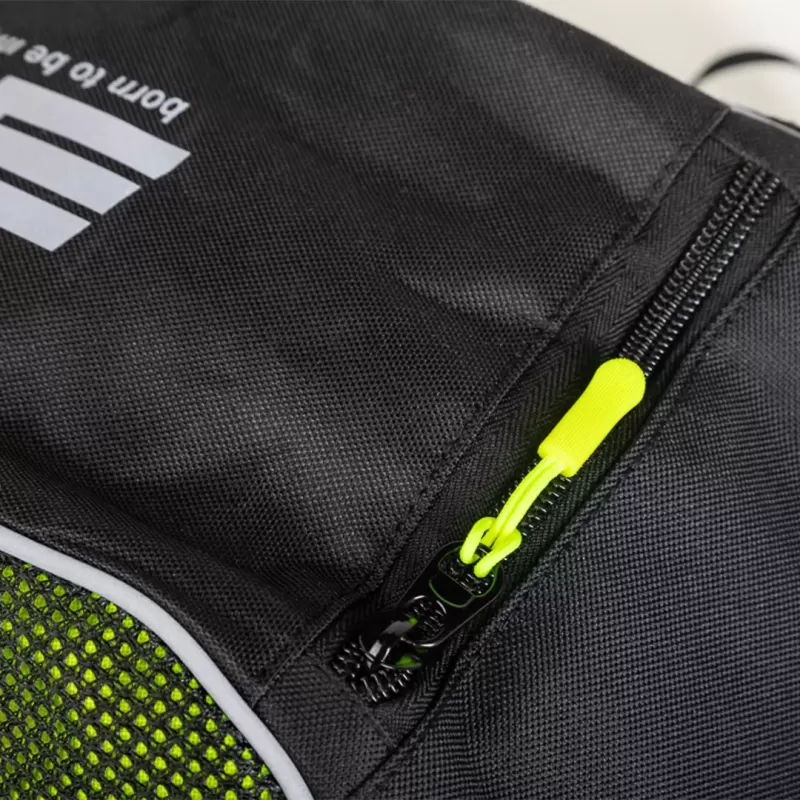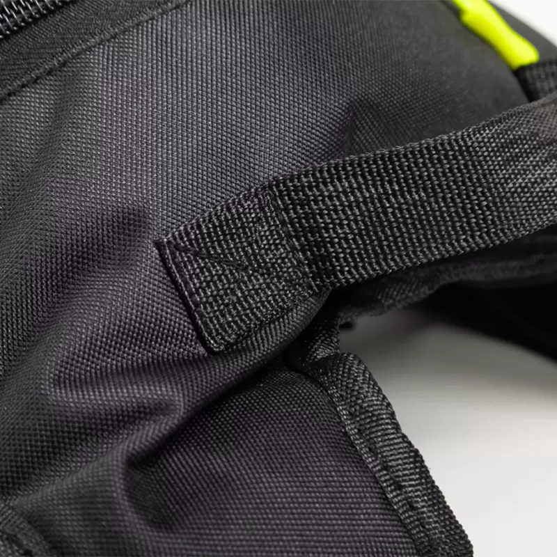 Lo scompartimento principale, con chiusura superiore a zip, offre capienza per caschi leggeri, cambi di abbigliamento o kit di emergenza. Le due tasche laterali esterne sono pensate per borracce, chiavi o piccoli accessori che vuoi avere sempre a portata di mano.