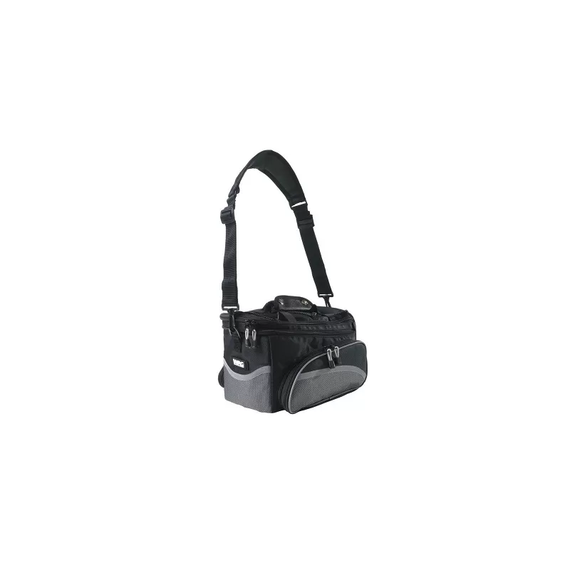 Wyposażony w pasek na ramię, uchwyty