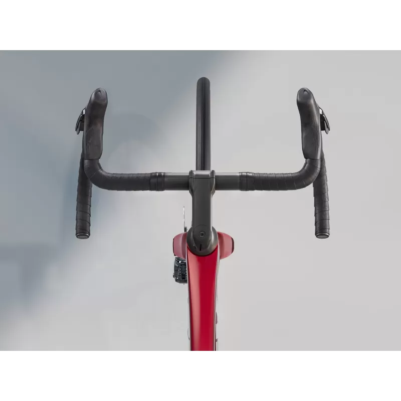 Madone SL 6 Gen 8 è una leggera bici da corsa aerodinamica che rende accessibili le tecnologie d'élite. Offre dei vantaggi aerodinamici simili a quelli della più costosa Madone SLR Gen 8, ma con una stratificazione in carbonio OCLV 500 più economica e un cockpit in due pezzi con passaggio cavi invisibile.